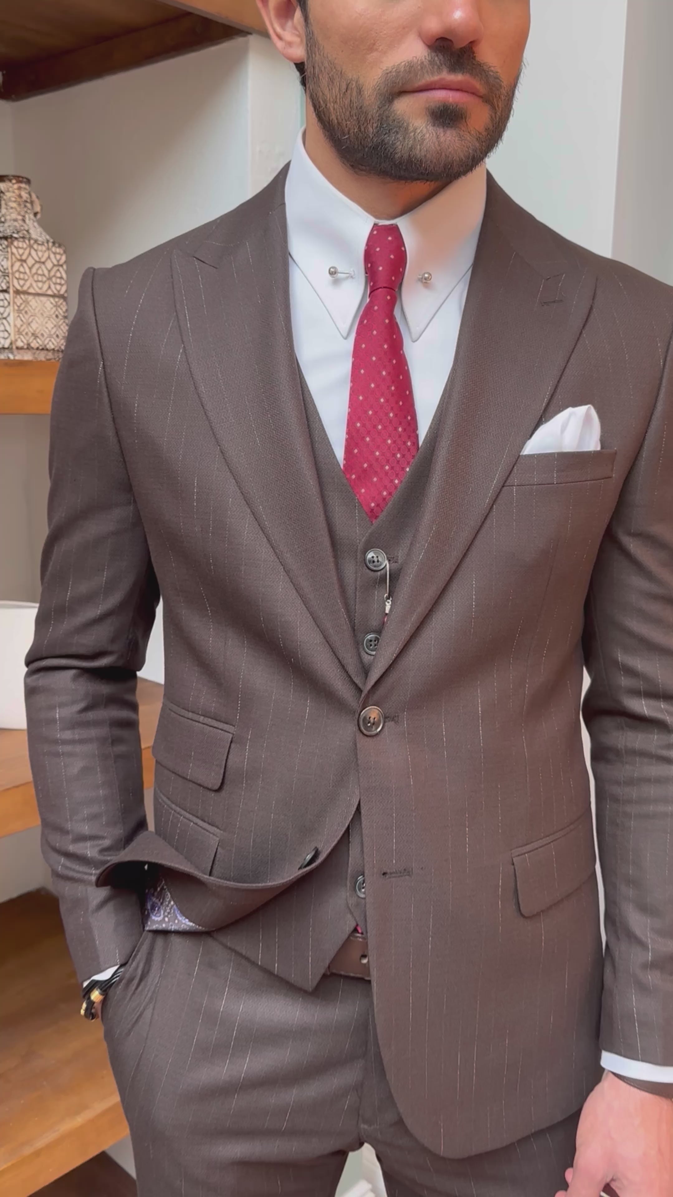 Brown Striped Slim-Fit Suit 3-Piece
